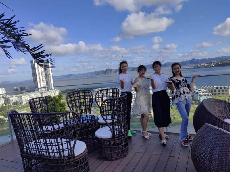 晚上入住的下龍灣五星級酒店十分豪華,房間布置豪華漂亮,打開窗簾面向大海,更有特色的是樓頂有游泳池、咖啡廳等,可以上去游泳、邊喝咖啡邊靠在椅子上觀看整個下龍灣的夜景,這也是拍照的絕佳好去處,公司男同事忙著游泳、女同事則忙著合影留念,忙的不亦樂乎。